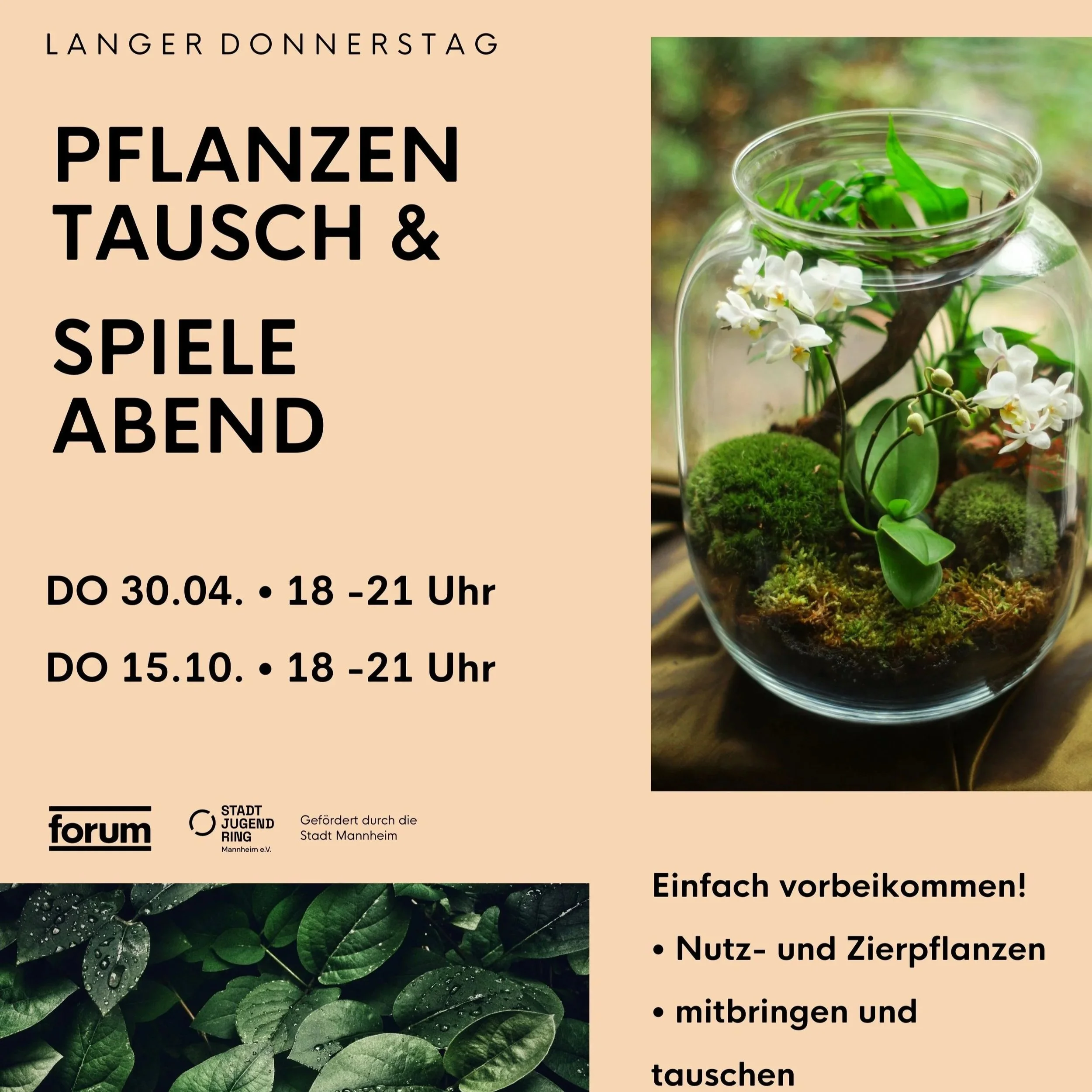 Am 30.04. öffnen wir unsere Türen für einen Pflanzentausch. Ob vorgezogene Nutzpflanzen oder Zier- und Zimmerpflanzen - alle sind willkommen! Bringt alles mit, was ihr habt und tauscht was das Zeug hält. Für einen gemütlichen Innenhof, Federball, Spiele + Snacks ist gesorgt!